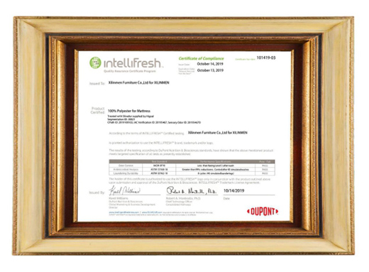 美國杜邦I(lǐng)ntellifresh抗菌技術(shù)抗菌效果高達(dá)99.9999%,是國家標(biāo)準(zhǔn)的100倍。使用該技術(shù)的床墊長效抗菌,即使經(jīng)40次反復(fù)洗滌,抗菌率仍能保持99.9%以上,而且長久使用,床墊表面不黃變。
