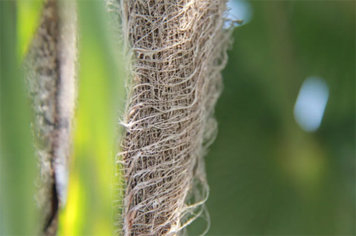 剝其棕皮纖維可作繩索,蓑衣,棕繃