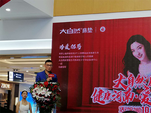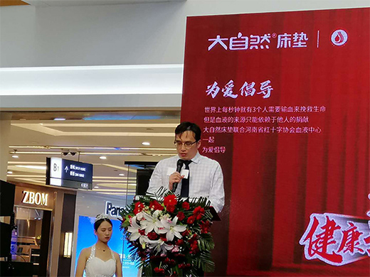 居然之家商都店總經(jīng)理唐綠化、大自然公司營銷北區(qū)總經(jīng)理程曉虎、河南省紅十字血液中心獻(xiàn)血服務(wù)科副主任沙建分別上臺(tái)致辭,普及獻(xiàn)血知識(shí),提高對(duì)定期獻(xiàn)血必要性的認(rèn)識(shí)。用自己的行動(dòng)向社會(huì)奉獻(xiàn)愛心,發(fā)揚(yáng)珍惜生命、友愛互助的高尚情操,營造一手抓健康睡眠一手抓愛心公益的氛圍。對(duì)無償獻(xiàn)血的志愿者們給予贊揚(yáng)及肯定同時(shí)呼吁更多人為健康與公益發(fā)聲。最后倡導(dǎo)讓我們的血液流淌,讓我們的愛心傳遞。