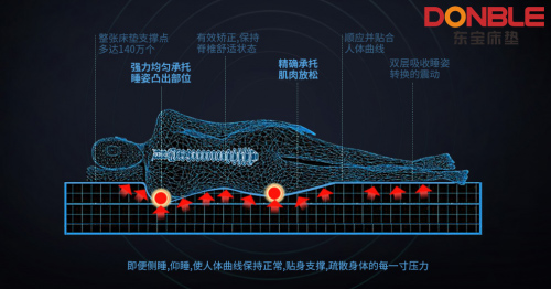 東寶床墊深入調(diào)查各類人群的睡眠習(xí)慣,精心選取承托性能好的材料以保證人體在享受床墊彈性的同時(shí)也能輕松翻身。東寶床墊所采用的獨(dú)立筒袋裝彈簧就是一個(gè)很好的例子,彈簧被分裝在單獨(dú)的獨(dú)立筒內(nèi),每個(gè)彈簧得以單獨(dú)受力,彼此之間互不干擾,此外,行業(yè)領(lǐng)先的五區(qū)獨(dú)立袋裝彈簧支撐設(shè)計(jì),也使得人體的頭部、肩部、腰部、臀部、腿部等主要受力部位都能得到有效的承托,平均分配身體壓力,自由自在翻身,是人快速進(jìn)入放松的睡眠狀態(tài)。