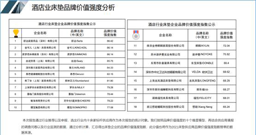 中國酒店業(yè)2021床墊品牌價值榜單出爐,舒達床墊穩(wěn)奪第一