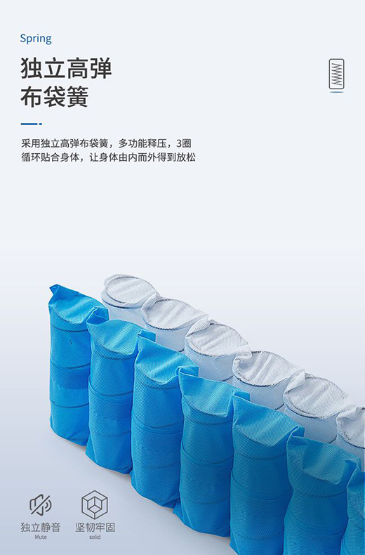 夢閑舒“正能量”床墊配備獨(dú)立高彈布袋簧,像素般支撐和貼合,托腰護(hù)脊。彈簧多,提供的支撐點(diǎn)足夠,支撐力強(qiáng),與身體的縫隙小,就像無數(shù)只小手穩(wěn)穩(wěn)承托身體,捕捉每個睡姿。減少不適輾轉(zhuǎn),更好舒適深睡。獨(dú)立高彈布袋簧柔軟緩壓,強(qiáng)化護(hù)脊,安靜、互不干擾,翻身既不影響整床大幅共振,更不會產(chǎn)生彈簧摩擦聲。