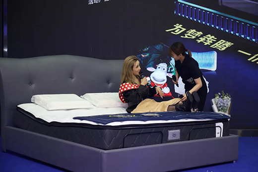▽斯琴高麗參觀并體驗(yàn)舒達(dá)iComfort智能睡眠系統(tǒng)。