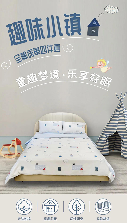 入手一套趣味小鎮(zhèn)全棉床單四件套