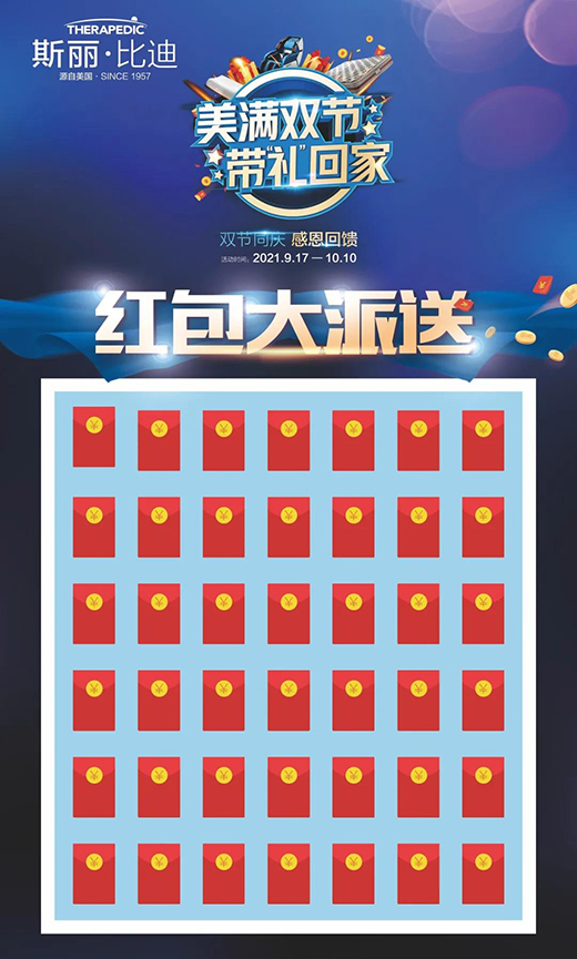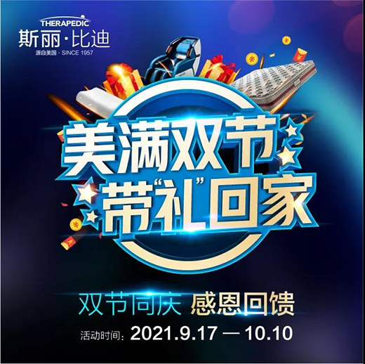 2021下半年的超級驚喜,肯定非“中秋國慶假期接踵而來”莫屬。黃金假期前后,國際知名品牌斯麗比迪床墊,“美滿雙節(jié),帶‘禮’回家”活動即將開啟(9月17日-10月10日),六重驚喜優(yōu)惠勢不可擋!