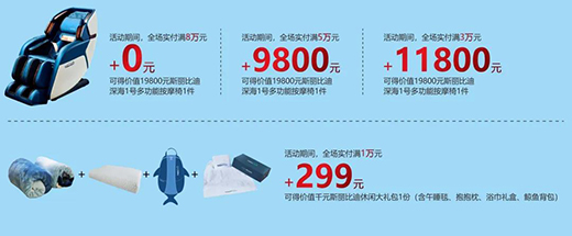 活動期間,滿額即可享深海1號多功能按摩椅超值換購,消費者能以更優(yōu)惠的價格購買到斯麗比迪優(yōu)質(zhì)睡眠產(chǎn)品。