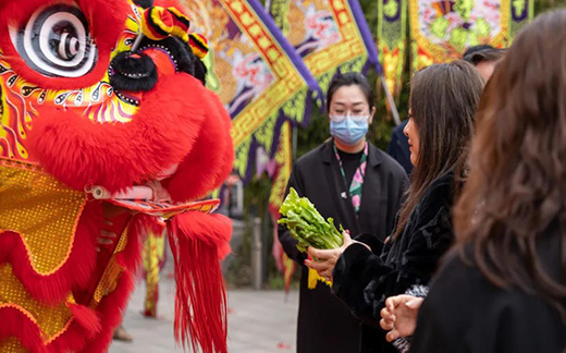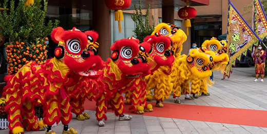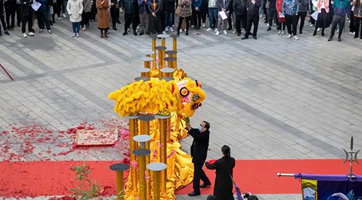 伴隨著陣陣鼓聲,精彩的舞獅節(jié)目正式開(kāi)始。六頭靈巧活潑的“雄獅”在鑼鼓聲中進(jìn)行了上凳表演、樁陣表演、高桿表演等,走鋼絲、騰空跳等高難度動(dòng)作輕松完成,引得一片掌聲與歡笑聲。