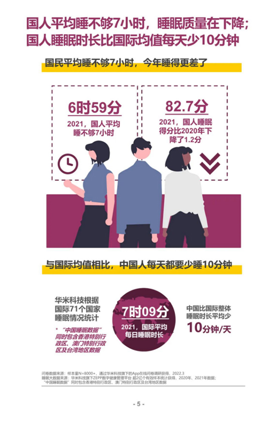 無(wú)從打破的睡眠障礙,難以獲得的優(yōu)質(zhì)睡眠,成為了大眾的新焦慮。根據(jù)《2022國(guó)民深睡&運(yùn)動(dòng)生活方式白皮書》的數(shù)據(jù)統(tǒng)計(jì),八成以上國(guó)人有睡眠障礙,在2021年一整年中,國(guó)人平均睡不夠7小時(shí),實(shí)際平均睡眠時(shí)長(zhǎng)僅為6小時(shí)59分,離“睡眠新國(guó)標(biāo)”的及格線僅差1分鐘。