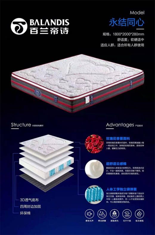 作為健康養(yǎng)生睡眠的守護(hù)者,百蘭帝詩(shī)家居一直在身體力行,為全球消費(fèi)者提供集“承托、舒適、耐用”于一體的高品質(zhì)床墊,幫助消費(fèi)者享受健康、舒適的睡眠體驗(yàn),助你一整天精神煥發(fā),活力滿滿!