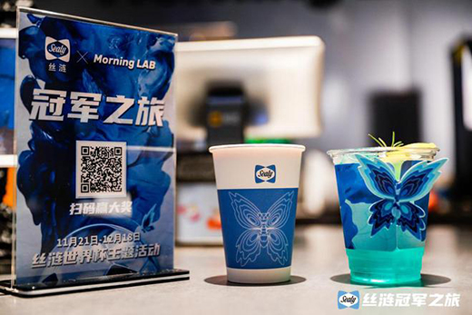 從2022年11月21日起至12月18日,“絲漣冠軍之旅”的活動時間將與世界杯的賽程同步,在這一個月里,絲漣與Morning LAB共創(chuàng)兩款驚喜飲品——絲漣聯(lián)名桂花厚椰拿鐵與絲漣藍飲品,并推出限定款藍蝶杯套,球迷們可以在Morning LAB體驗絲漣帶來的這份獨家驚喜。早晨,在絲漣帶來的舒適床墊與香醇咖啡中開啟美好一天,迎接生活中的精彩時刻;夜晚,絲漣與你相約在Morning LAB共同觀看球賽,在綿密的酒花中感受賽場上的激情瞬間。