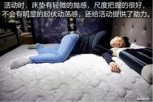 據(jù)康麗萊工作人員介紹,此款床墊光是主體支撐層就有三種設(shè)計,分別是加強(qiáng)型獨立彈簧系統(tǒng)、M系邊緣加固支力彈簧、360度泡棉防撞設(shè)計,軟硬度適中,承托平穩(wěn),支撐力強(qiáng)。有消費者反饋使用體驗,“水晶之夢”床墊不管是平躺、側(cè)睡,還是翻身起身,都有強(qiáng)烈的平穩(wěn)感,感覺整個人都被床墊很自然地容納,不過于包裹,也不會生硬。