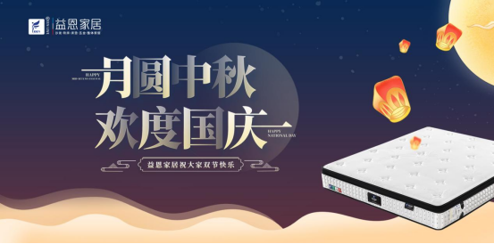 在這個(gè)雙節(jié)同慶的時(shí)刻,益恩家居床墊邀您共享溫馨家園,體驗(yàn)由心而生的幸福。讓益恩家居床墊成為您家中最幸福的陪伴,共度每一個(gè)溫馨時(shí)光。