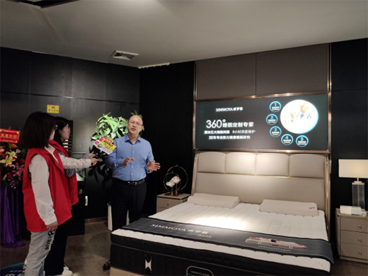 許多客商被康麗萊家居的品牌魅力和產(chǎn)品特色所吸引,紛紛從展會(huì)現(xiàn)場(chǎng)專程來(lái)到康麗萊總部展廳再仔細(xì)了解和品鑒,零距離體驗(yàn)各種系列床墊和軟床實(shí)物??蝶惾R業(yè)務(wù)團(tuán)隊(duì)熱情專業(yè)的引導(dǎo)和講解,從原材、面料到技術(shù),令人驚喜和滿意,隨后進(jìn)店觀看的人群越來(lái)越多,熱鬧非凡。