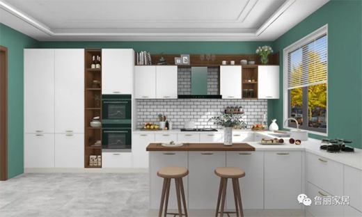 廚房整體采用經(jīng)典的白色門板將視野拓寬,整體設計藏露結合,既方便零散物品的存放,又方便常用物品的拿取。