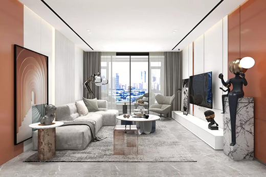 時尚永遠(yuǎn)跟色彩緊密連接,就比如愛馬仕橙將奢華與高貴刻入肌理,也將優(yōu)雅與華麗滲透心底。把愛馬仕橙加入背景墻一角,讓平平無奇的米色瞬間張力十足,搭配灰色布藝沙發(fā)、古銅色與白色大理石的茶幾、金屬系列擺件等等,一切都顯得格外恰到好處。