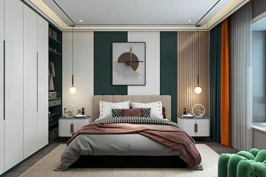 臥室選用了經(jīng)典的愛馬仕橙搭配純凈的墨綠色,一個清新一個時尚,亮眼卻不夸張。墨綠色的背景墻、窗簾與小沙發(fā)的加入為空間注入了一抹生機(jī)與靈動,但讓人意外的是墨綠色窗簾銜接的愛馬仕橙竟別有深意,濃烈的愛馬仕橙,讓原本靜謐的空間又多了一絲溫度。享受生活,忠于自己,從好看的家開始。