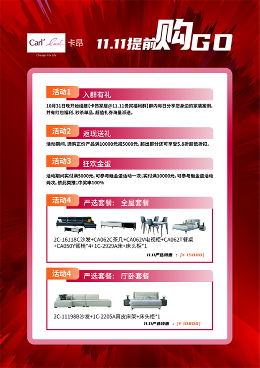 10月31日晚開始組建【卡昂家居@11.11貴賓福利群】群內(nèi)每日分享您身邊的家裝案例,并有紅包福利、秒殺單品、超值禮券海量派送。