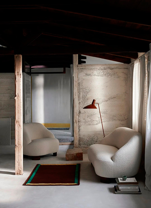 能為消費者帶來安全舒適感的設(shè)計,如今也成了軟體家居的趨勢之一?;⌒芜\用的多樣化,讓家具設(shè)計更顯圓潤而溫情,配以像羊毛卷這樣,手感飽滿,自然細(xì)膩的面料,共同帶來治愈人心的力量。