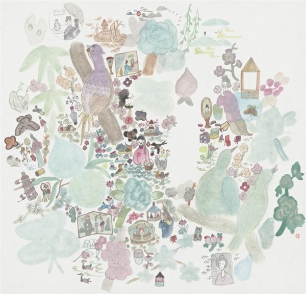“中國文人畫的散點(diǎn)透視,讓我用東方人的方式看世界,而水墨輕靈,像一種吟誦,更接近生命的韻律。由此意象不受限制的延伸與累積,一生二,二生三,三生萬物?!?/p>