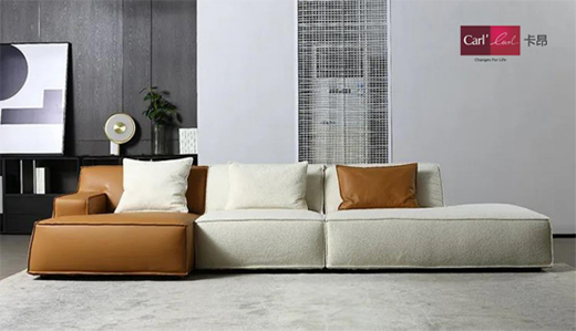 卡昂“焦糖瑪奇朵”沙發(fā)整體采用焦糖色科技生態(tài)皮+奶白色泰迪絨,白色與棕色,化作天生的搭檔,彼此滲透交融,碰撞出驚人的能量與張力,打破空間的單一感與沉悶感,突顯格調(diào)又不炫耀。極簡(jiǎn)藝術(shù)和色彩美學(xué)讓空間情緒純粹而寧?kù)o,將矛盾感表達(dá)得恰到其分,營(yíng)造出時(shí)尚前衛(wèi)的感覺(jué)。沙發(fā)采用組合式的連接結(jié)構(gòu),用戶(hù)可以自由組建心目中的理想組合,形成不同形式的沙發(fā)群,即可變換新穎的外觀(guān)?!癓ess is more”,正是現(xiàn)代人探尋的幸福良方。