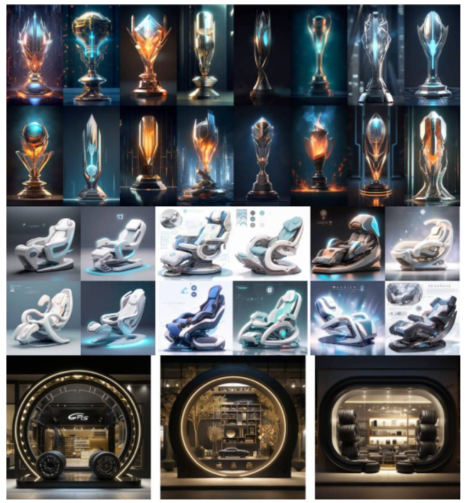 不僅僅是目前市場上俯拾皆是的“包裝”、“海報”設(shè)計,對于已經(jīng)邁入AI設(shè)計2.0時代的洛客來說,專業(yè)咨詢設(shè)計與AI創(chuàng)新生產(chǎn)力也在不斷碰撞出新的火花。在為中糧面粉提供整案設(shè)計服務(wù)的過程中,除了利用設(shè)計師的經(jīng)驗智慧進行產(chǎn)品定義,也同樣借助AI高效出具高端設(shè)計方案,完成初級農(nóng)產(chǎn)品領(lǐng)域的創(chuàng)新。同樣,在為數(shù)智化軟床供應(yīng)鏈企業(yè)打造定制化設(shè)計方案時,先通過AI訓練得到1個定制化大模型,再根據(jù)客戶的需求加以若干個精準場景,以更快速度實現(xiàn)軟床品類創(chuàng)新。除此之外,洛客越來越多的設(shè)計方案,如無畏契約全球冠軍賽獎杯、老年人自動洗澡機、安亭古街漂移式展廳等,均融入了AI設(shè)計的創(chuàng)新力量。