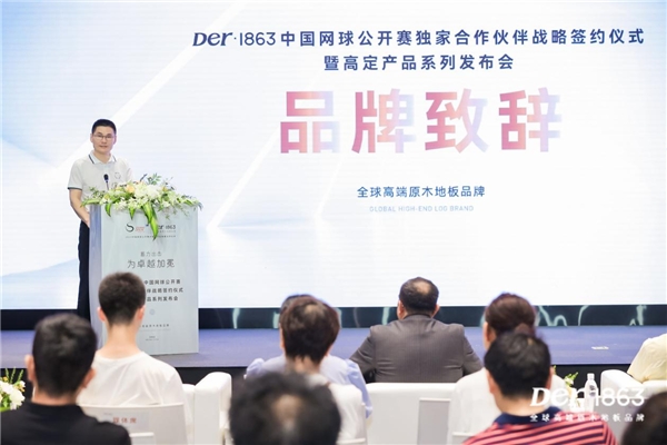 德爾董事、執(zhí)行總裁,兼地材產(chǎn)業(yè)總裁姚紅鵬先生代表德爾發(fā)表致辭,他表示,德爾致力于為消費者提供綠色環(huán)保、科技領(lǐng)先的家居產(chǎn)品和前沿家居體驗,多年來憑借卓越的運營管理及產(chǎn)品和服務(wù)質(zhì)量,成為國內(nèi)領(lǐng)先的專業(yè)木地板品牌服務(wù)商和環(huán)保地板倡導(dǎo)者。Der·1863作為消費升級、消費分級時代背景下的必然產(chǎn)物,是德爾探索高端木地板品類的一條正確的道路。本次與中網(wǎng)賽事的合作,Der·1863以其倡導(dǎo)高品質(zhì)生活方式的理念與網(wǎng)球運動優(yōu)雅嚴(yán)謹(jǐn)、追求卓越的精神不謀而合,期待通過戰(zhàn)略合作,在未來持續(xù)共創(chuàng)賽事精彩、踐行高雅生活方式。