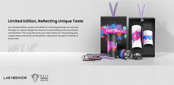 此次獲獎(jiǎng)的WAKE UP禮盒,更是“LOVEHOLIC”主題系列中的代表之作,它秉持LAB?HEENOOR全系產(chǎn)品的六大功能,采用精湛的曲面印刷技藝,呈現(xiàn)出無(wú)與倫比的精致美感。多層防漏杯蓋、可調(diào)節(jié)的便攜繩,以及輕量旋薄工藝的巧妙運(yùn)用,讓你輕松釋放雙手,安心隨行。種種細(xì)節(jié)不僅體現(xiàn)了LAB?HEENOOR對(duì)用戶需求的深刻洞察,更彰顯了對(duì)產(chǎn)品品質(zhì)的極致追求。