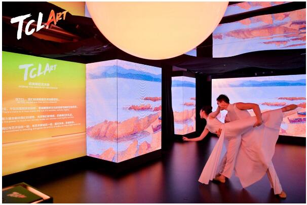 藝術(shù)大屏環(huán)繞的中心,雙人現(xiàn)代舞者靈動(dòng)搖曳,肢體勾勒的線條與藝術(shù)品相輔相成。藝術(shù)家周日央、黃玉龍,策展人祝羽捷與嘉賓們漫步于室內(nèi)展區(qū),全感官沉浸感知藝術(shù)的魅力。周日央的“下腰女孩”裝置作品不僅在戶(hù)外以超大氣模的形式給大家?guī)?lái)視覺(jué)藝術(shù)的沖擊,也在TCLArt世界級(jí)藝術(shù)畫(huà)展展區(qū)與黃玉龍的裝置作品“yueliang”月球燈一同陳出,與四周的世界名畫(huà)一起為大家?guī)?lái)一份貫穿東西方藝術(shù)的純粹感動(dòng)。TCL還與Seesaw合作打造茶歇區(qū),為嘉賓們帶來(lái)5款藝術(shù)聯(lián)名飲品,讓藝術(shù)的創(chuàng)意融化為味蕾的享受。