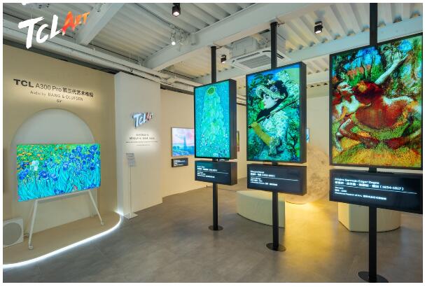 (2F TCLArt世界級(jí)藝術(shù)畫(huà)展展區(qū)陳覽的畫(huà)作與TCL A300 Pro第三代藝術(shù)電視)