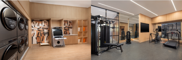 暢享“智慧”家居也是Atwell筑格酒店的重要特色之一。酒店配備全屋智能操控系統(tǒng),支持語(yǔ)音控制與一鍵客服,賓客可輕松調(diào)節(jié)溫度與燈光,使用智能家電,并配備隨心調(diào)節(jié)高低的升降桌以滿足不同場(chǎng)景需求。浴室設(shè)有熱毛巾架,電視支持智能投屏,賓客可獲得更順暢的居停體驗(yàn)。酒店還設(shè)有“洗躍”健身洗衣空間,配有座位、游戲機(jī)等設(shè)施,打造具備洗衣和健身功能的社交休閑區(qū),讓入住體驗(yàn)更加豐富自在。