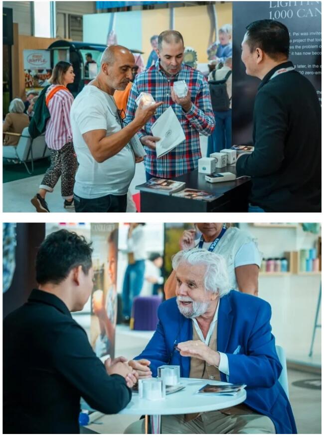 展會期間,蠟燭免費(fèi)贈予參觀者。張建民表示“希望環(huán)保理念走進(jìn)巴黎街巷”,一位法國設(shè)計師點(diǎn)亮后感慨:“這抹光藏燭光溫柔與環(huán)保責(zé)任,是東西方美學(xué)融合?!眳⒂^者握住的不僅是設(shè)計品,更是跨國默契——對美與家園的珍視,本就是連接不同文化的紐帶。