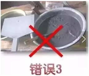2 把瓷磚膠放在地上用鐵鍬攪拌首先放在地上會導(dǎo)致瓷磚膠的有效化學(xué)成分流失;其次用鐵鍬無法攪拌均勻,同時手工攪拌加水的比例很難精準(zhǔn),使材料配比發(fā)生改變,導(dǎo)致粘接力降低。