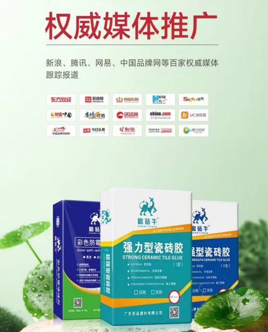 面對白熱化的市場競爭,打造強有力的品牌是突出重圍、化險為機的關(guān)鍵。作為瓷磚膠領(lǐng)域的卓越品牌——瞻貼牛,在保證高效率生產(chǎn)及正常運營工作的基礎(chǔ)上,如火如荼地啟動了品牌營銷推廣戰(zhàn)略,攜手國內(nèi)知名品牌營銷公司,與各大主流媒體達成合作,做好卓越的宣傳,促進品牌造勢,形成爆炸級的口碑效應。