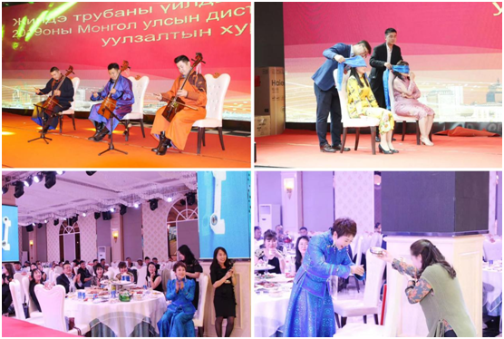 在熱鬧祥和的氛圍中,現(xiàn)場(chǎng)開(kāi)始了精彩的節(jié)目表演。開(kāi)場(chǎng)表演是特色的馬頭琴表演,廣大經(jīng)銷(xiāo)商朋友沉醉在悠揚(yáng)的琴聲中。隨著精彩節(jié)目的一一呈現(xiàn),現(xiàn)場(chǎng)氣氛逐漸升溫。情不自禁時(shí),蒙古國(guó)經(jīng)銷(xiāo)商朋友或高唱蒙古國(guó)歌曲,表達(dá)敬意;或盡情舞蹈,其樂(lè)無(wú)窮。美酒美食逐漸上齊,大家舉杯暢飲,為了此行的緣分而干杯,也為了美好的明天而干杯。