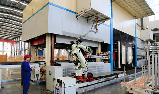走進新大管業(yè)第七工業(yè)園內(nèi)1號生產(chǎn)車間,機械手臂正在靈活地工作,與很多傳統(tǒng)車間不一樣的,偌大的車間里,僅能看見三五個工人?!耙粭l生產(chǎn)線最多只需要兩個人就能操作,其余都是通過智能機器人實現(xiàn)的?!闭f起這條生產(chǎn)線,新大管業(yè)第七工業(yè)園負責人劉坤抑制不住內(nèi)心的激動,“這是我們自主研發(fā)的工藝,專門定制的設備,目前全世界僅此一臺!”劉坤介紹,這是公司為年產(chǎn)20萬平方米超大型中空結(jié)構(gòu)高強度復合材料制品項目新上的生產(chǎn)線,主要用于高強復合材料墊板生產(chǎn)。