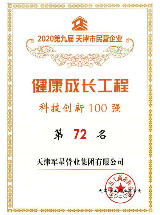 軍星管業(yè)集團(tuán)榮列第九屆天津市民營企業(yè)科技創(chuàng)新百強(qiáng)企業(yè)!