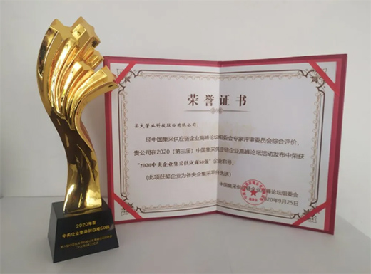 重磅!圣大管業(yè)榮膺“2020中央企業(yè)集采供應(yīng)商50強(qiáng)”