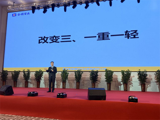 在主持人的邀請(qǐng)下,國(guó)內(nèi)知名的家居建材行業(yè)戰(zhàn)略營(yíng)銷專家劉登榜老師亦登上舞臺(tái),從經(jīng)營(yíng)之道、團(tuán)隊(duì)之道、銷售之道、服務(wù)之道四個(gè)緯度為金德經(jīng)銷商講解終端破局之法。