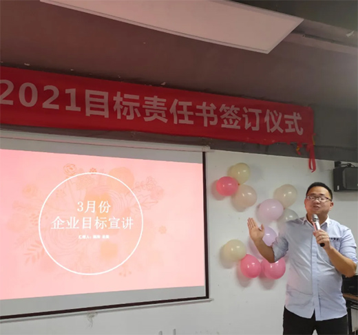 會議開始,首先運營總監(jiān)陳浩對2021年1~2月份進行了銷售總結并宣布了三月份的銷售目標。今日的總結是為了明天更好的發(fā)展,公司在全體寬裕人的努力下,必將走向新的輝煌。