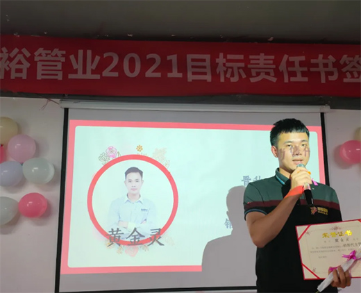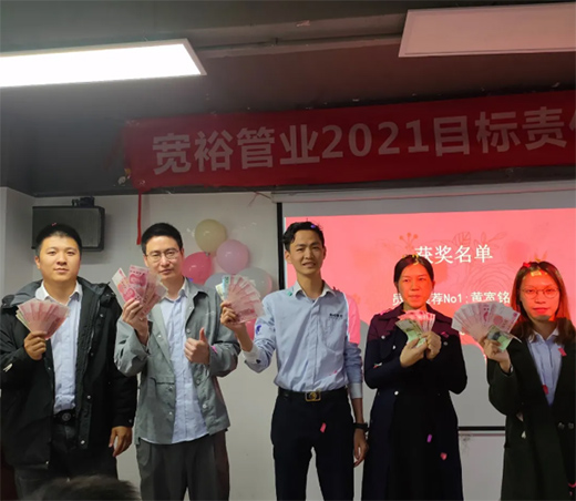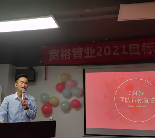 3月3日,寬裕管業(yè)3月份啟動會暨2021目標責任書簽訂儀式在寬??偛咳龢菚h室隆重舉行。明確2021年度任務目標,統(tǒng)一思想,理清思路,讓大家更加明確清晰自身肩負的責任和壓力,以行之有效的手段和措施去推動各項工作。