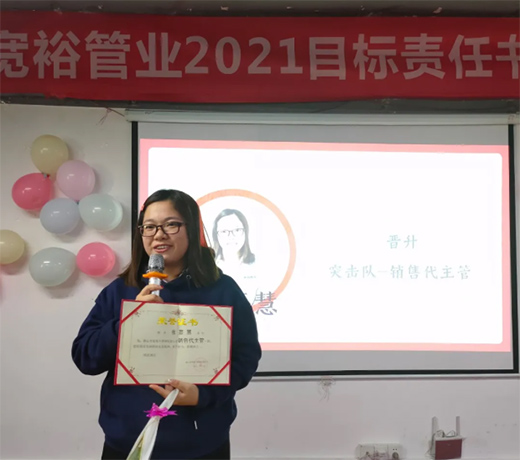 黃寬銘總經理在本次活動總結中說到:在寬裕的平臺上,我們可以不斷晉升不斷發(fā)展。2021年,我們除了銷售目標,還有人才目標,很多事情都是靠人才做出來的,團隊與能力非常重,你解決問題的能力越大,你收獲越大,你的價值就越大。期待2021年是達成目標的一年,是每個寬裕人共同成長的一年。希望我們所有人可以享受成長的快樂,期待我們所有人都可以加速成長。