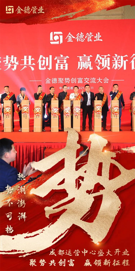 2021年4月11日,金德管業(yè)集團(tuán)成都運(yùn)營中心盛大開業(yè)暨四川片區(qū)創(chuàng)富交流會(huì)議圓滿召開,標(biāo)志著金德管業(yè)邁出扎實(shí)的步伐,贏領(lǐng)新征程!