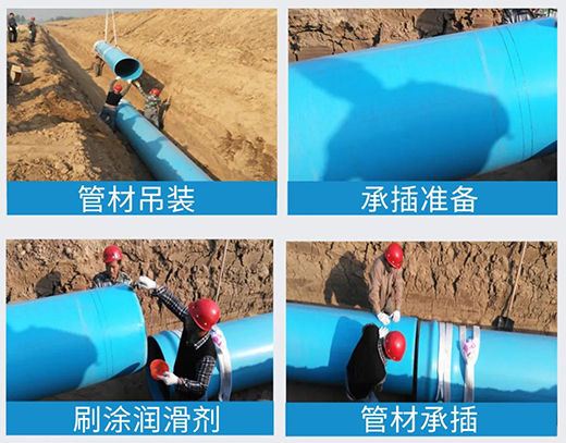 采用承插形式連接,雙膠圈有效保障了接口的密封性能,且插口端畫有安裝指導線,承插完成后有一道劃線均勻的的露在外面,有非常好的安裝指示作用。