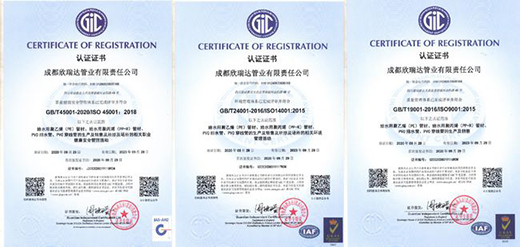 在產(chǎn)品的質(zhì)量把控上,欣瑞達(dá)力求精準(zhǔn)。每一個(gè)環(huán)節(jié),每一個(gè)流程,每一個(gè)產(chǎn)品都嚴(yán)格遵循高標(biāo)準(zhǔn)、高要求。旗下所有產(chǎn)品均嚴(yán)格按照GB-T18742-2002《冷熱水用聚丙烯(PP-R)管材》、GB/T13663-2000《給水用聚乙烯(PE)管材》等國標(biāo)生產(chǎn),更甚至,還委托四川省產(chǎn)品質(zhì)量監(jiān)督檢驗(yàn)所定點(diǎn)檢驗(yàn)合格,十分具有權(quán)威性、真實(shí)性。正是因?yàn)閷?duì)質(zhì)量的嚴(yán)格把控,讓它榮獲了PE質(zhì)量管理體系、中國綠色環(huán)保產(chǎn)品等多項(xiàng)證書。