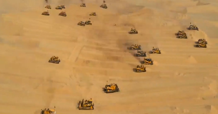 近日網(wǎng)上發(fā)布了一條視頻,畫面中為新疆一條沙漠公路的施工現(xiàn)場,30余臺推土機(jī)把在高聳的沙丘間縱橫往返,推出路基,機(jī)器轟鳴,場景震撼!引爆了“基建狂魔又對新疆的沙漠動手了”的話題。