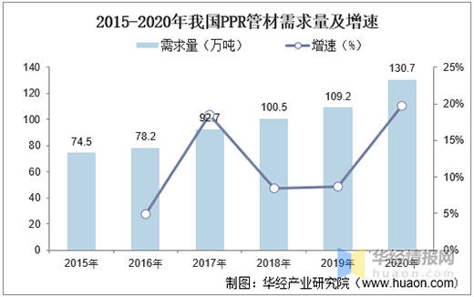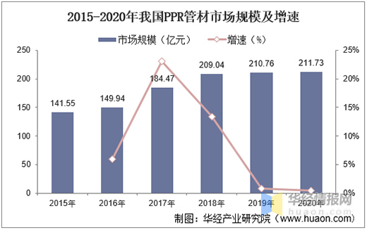 2015-2020年我國PPR管材市場規(guī)模及增速