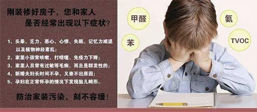 甲醛是一種透明無色,帶有刺激性的揮發(fā)氣體,長期居住在甲醛超標的環(huán)境中,會出現(xiàn)呼吸道的嚴重刺激和水腫、眼刺痛、頭痛等。皮膚直接接觸甲醛,可引起皮炎、色斑、壞死,還有可能引起慢性中毒,出現(xiàn)粘膜充血、皮膚刺激癥等,嚴重的直接引發(fā)白血病和淋巴癌,導致生命受到極大的威脅。要么概率是0,要么是100%,不要心存僥幸!