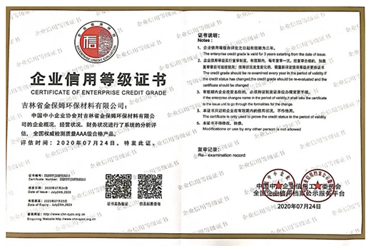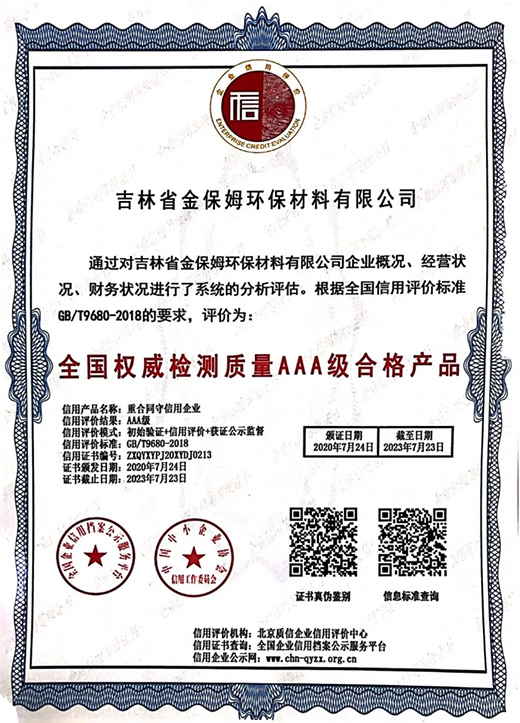經(jīng)過近兩個(gè)多月的綜合評定,吉林省金保姆環(huán)保材料有限公司,被評價(jià)為“重合同守信用企業(yè)”“全國權(quán)威檢測質(zhì)量AAA級合格產(chǎn)品”證書,正式下發(fā)文件。