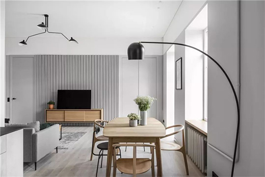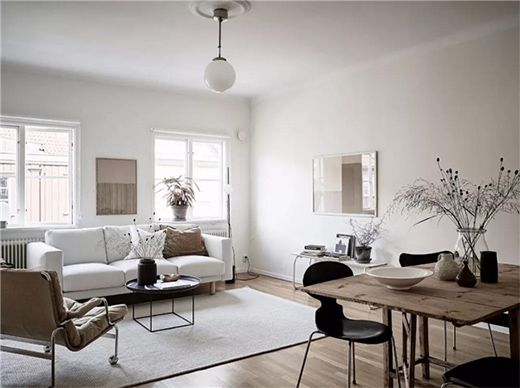 鹽系裝修風(fēng)格強(qiáng)調(diào)視覺統(tǒng)一的平衡感,弱化了墻面在整體家裝中的存在感,保持干凈整潔而摒棄過多裝飾,不同于簡約風(fēng)格追求的簡單,而是追求簡約干凈而不雜亂,以直接的線條感突出家具本身的實(shí)用性。在軟裝家具的選材上主打親近自然,實(shí)用性與裝飾感并存的棉麻和原木都是不錯(cuò)的選擇。