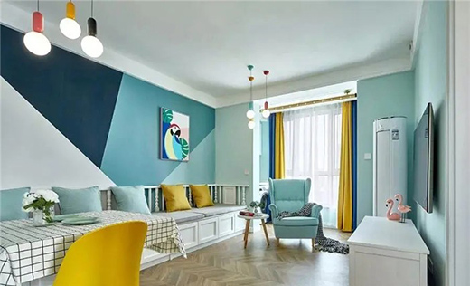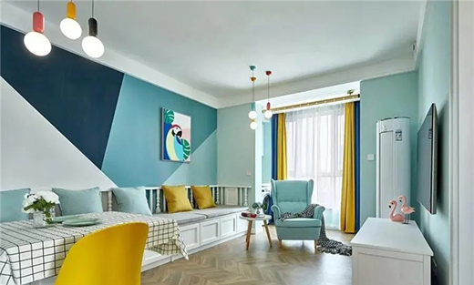 客廳背景墻是展現(xiàn)小清風(fēng)的重點(diǎn)位置,最重要的位置當(dāng)然要搭配的最漂亮顯眼。墻面選用幾何色塊拼接,色彩選擇綠色的同色系,這樣的拼接設(shè)計(jì)簡(jiǎn)直太漂亮了!這么漂亮的設(shè)計(jì)當(dāng)然不能只能放在小小的沙發(fā)背景墻。所以這整面墻都都采用這樣的搭配,不僅在視覺上起到延伸的效果,而且將這面墻完美的呈現(xiàn)在眼前,讓人眼前一亮,立馬確認(rèn)這是小清新無疑了。